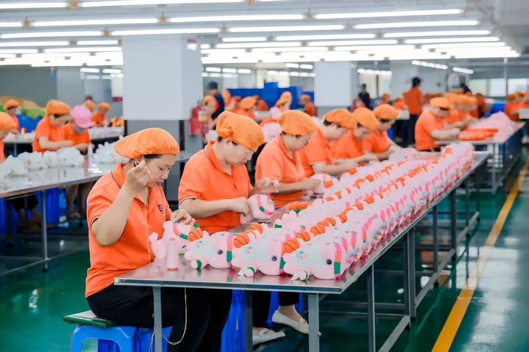 正在潮玩之都的东莞,数字化海潮同样为保守玩具行业注入新颖活力。正在东莞茶山镇的东莞康达玩具礼物无限公司(下称“康达玩具”)车间里,数百名工人正紧锣密鼓地赶制第十五届全国活动会(下称“十五运会”)吉利物“喜洋洋”“乐融融”毛绒公仔,一派忙碌气象。